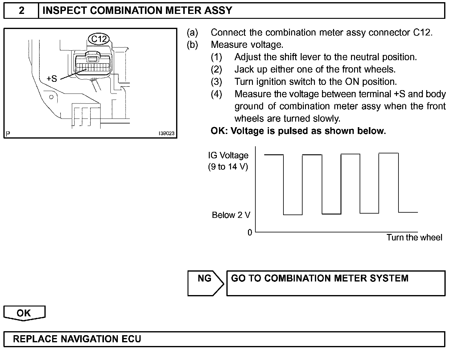 The navigation ECU receives the vehicle speed signal and information about the GPS antenna, and then adjusts the vehicle position.