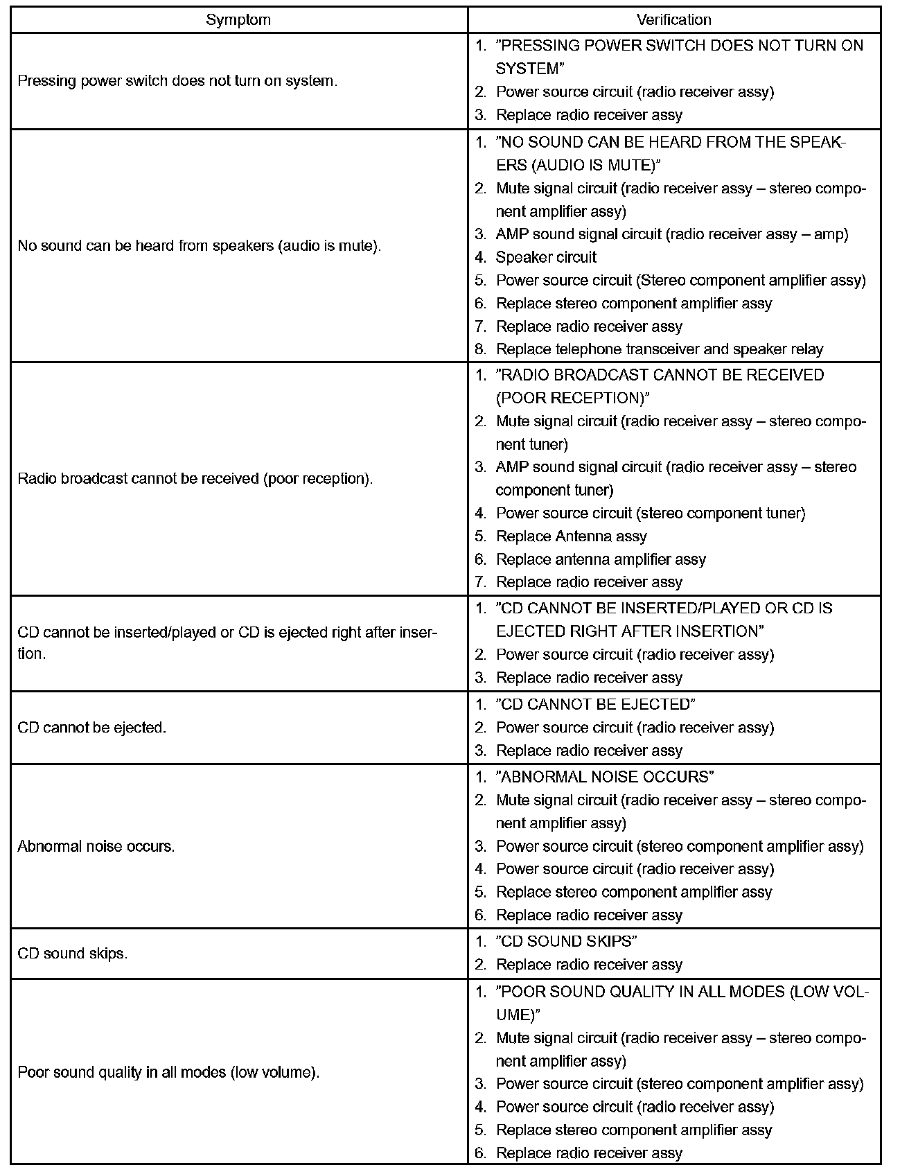 - Methods used to verify the cause of the problem are listed in order of probability in the verification column.