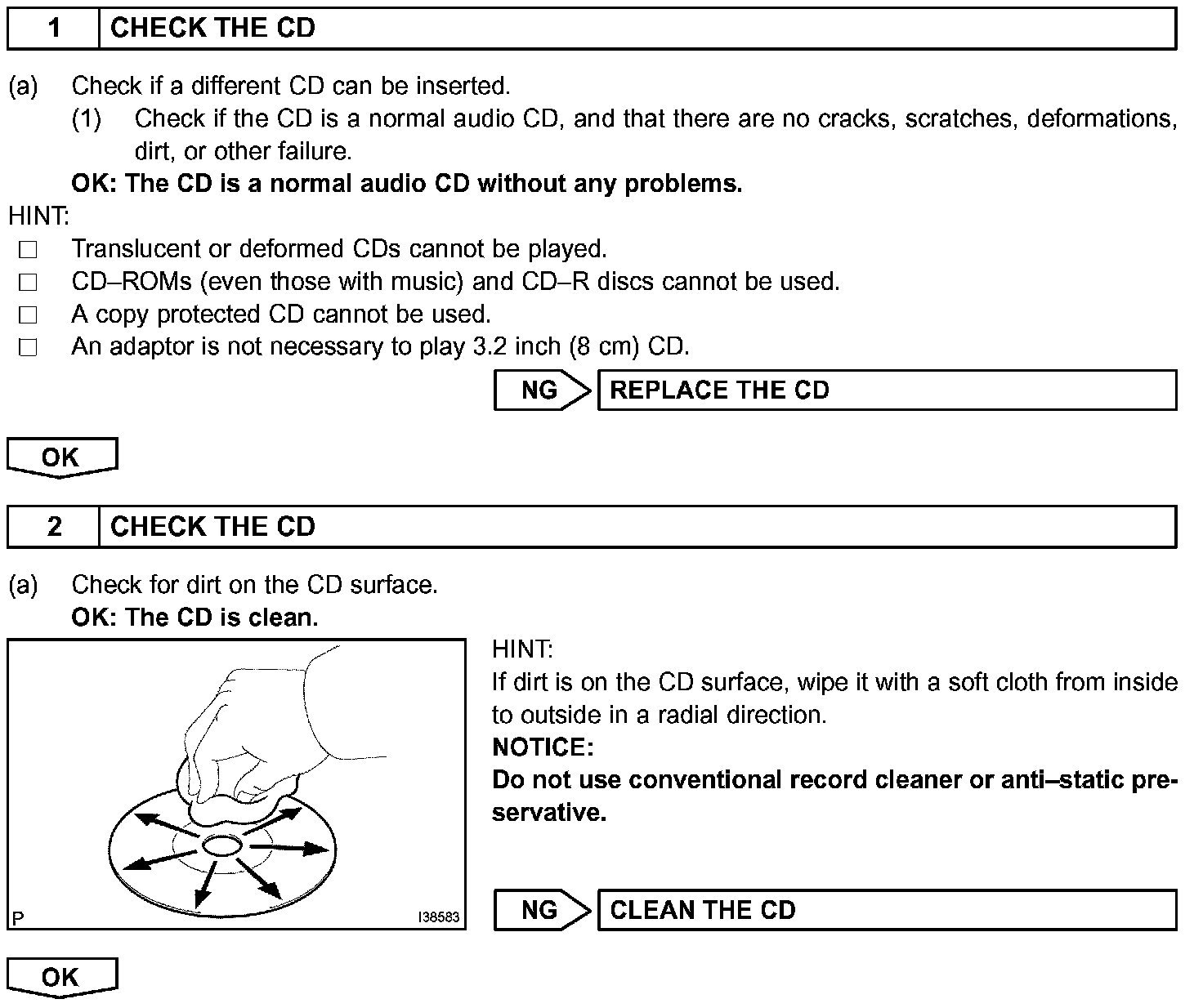 CD CANNOT BE INSERTED/PLAYED OR CD IS EJECTED RIGHT AFTER INSERTION