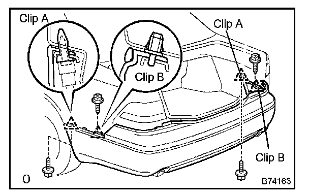 d. Using a screwdriver, disengage the 2 clips labeled A and 2 clips labeled B. Then remove the bumper cover.
