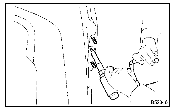 a. Using an air riveter or hand riveter with nose piece, strike waterproof rivets of dia 4.9 mm (0.19 in.) into the side retainer to install the rivet to the bumper cover.