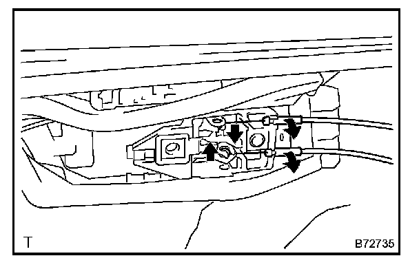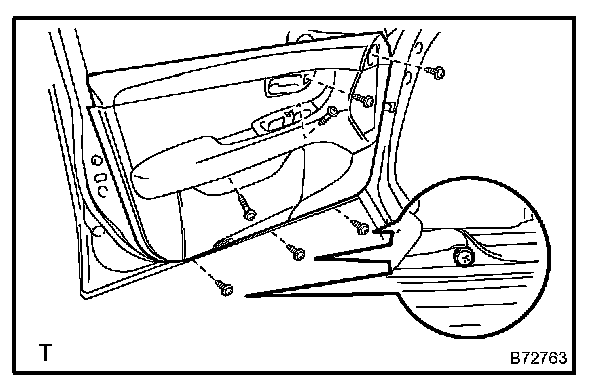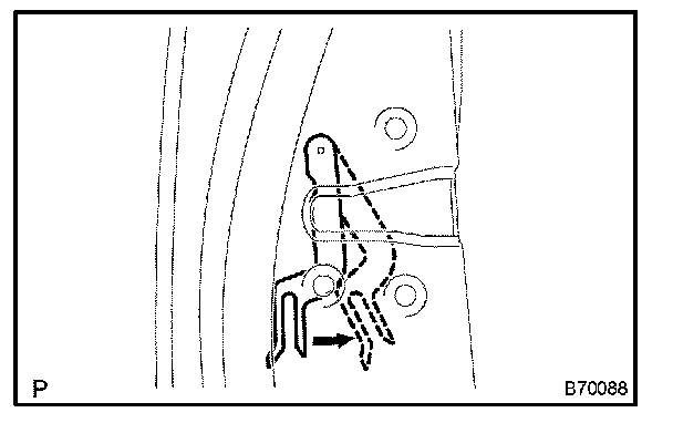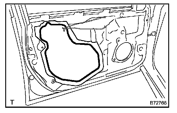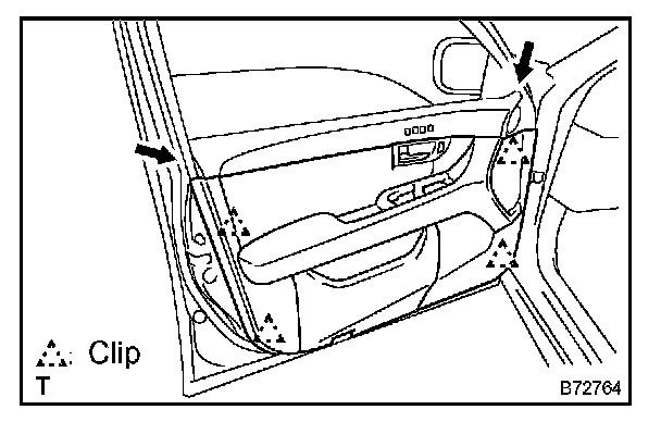 HINT: In order to prevent the door panel from being damaged, use protective tape to cover the areas indicated by the arrow marks in the illustration.