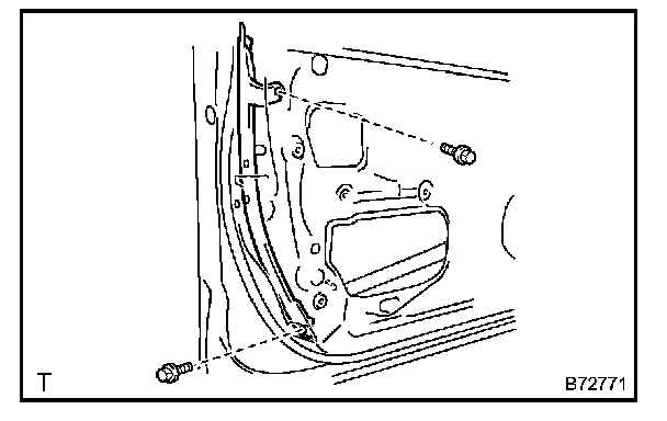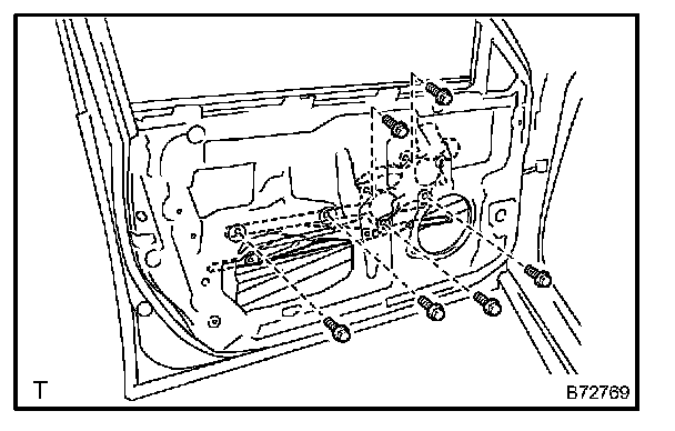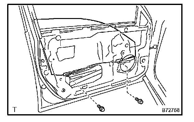 NOTE: Be careful when removing the bolts as the window regulator may fall and become damaged.