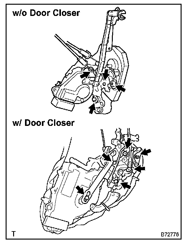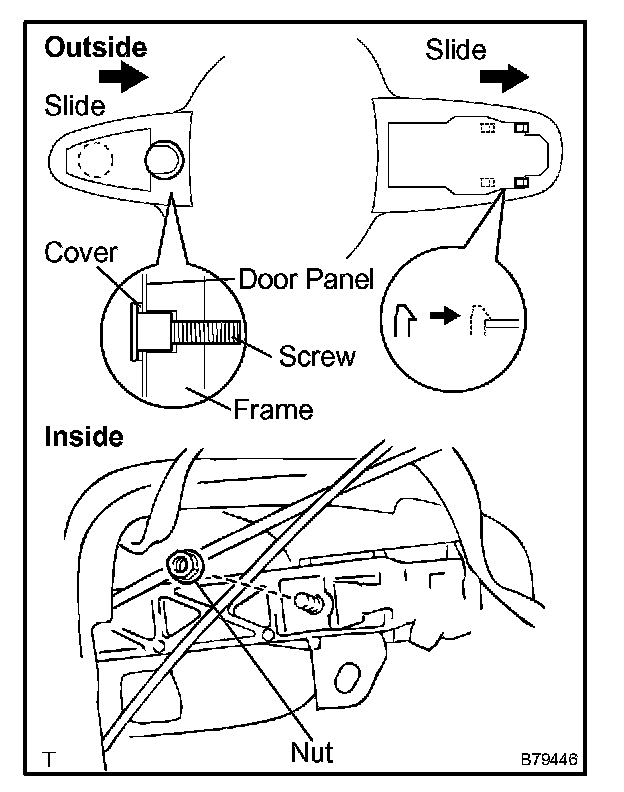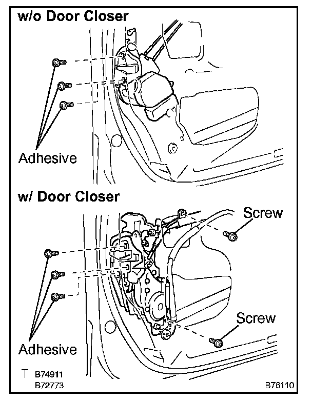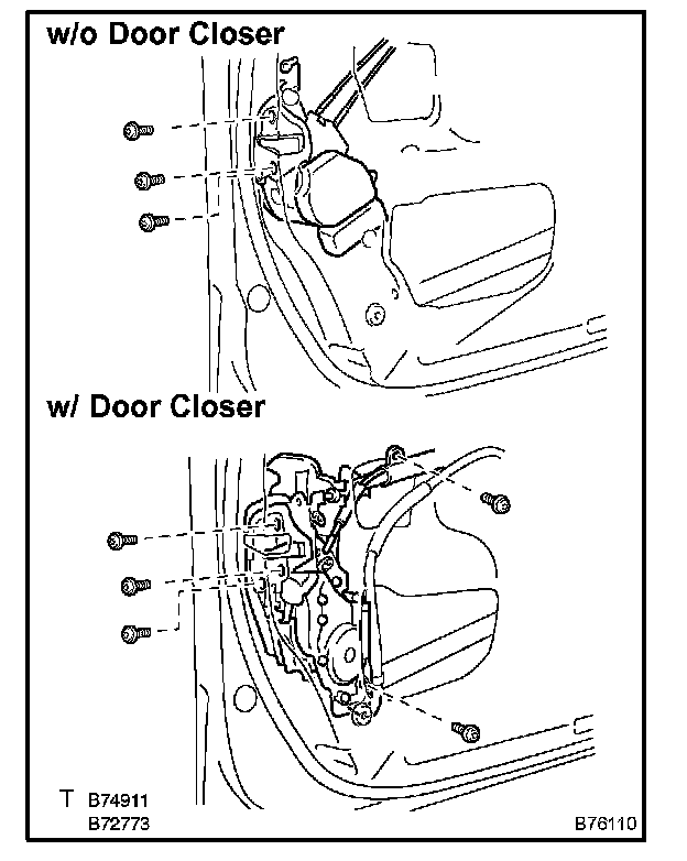 NOTE: Be careful when removing the bolts as the door lock may fall and become damaged.
