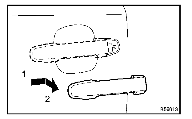 21. REMOVE FRONT DOOR HANDLE ASSEMBLY OUTSIDE LH