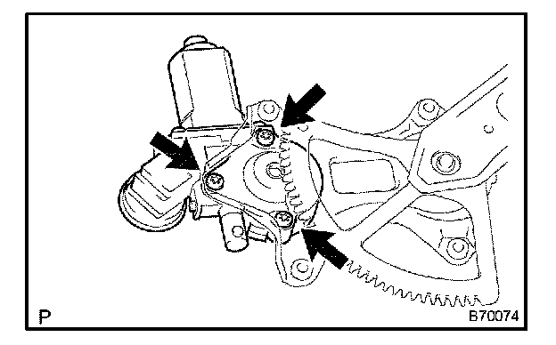 a. Place matchmarks on the window regulator motor bracket and regulator gear.