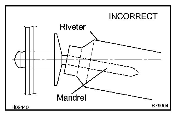 - Do not prize the riveter. The riveter will be damaged and the mandrel will bend.