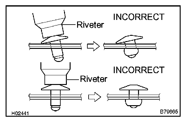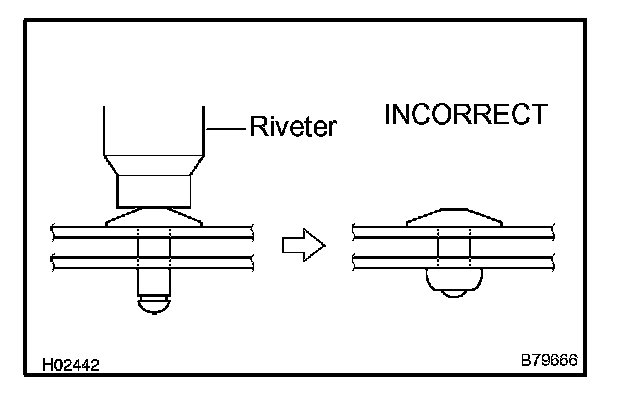 - Do not tilt the riveter when fastening the rivet to the glass run as this will cause the rivet to be loose.