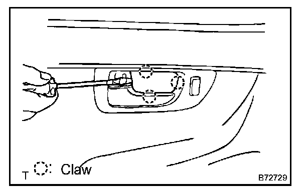 e. Using a screwdriver, disengage the 2 claws and remove the inside door handle.