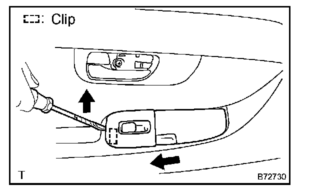b. Using a screwdriver, disengage the 2 claws and remove the window control switch from the armrest panel assembly.