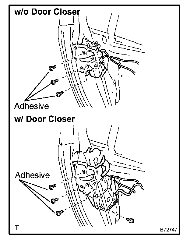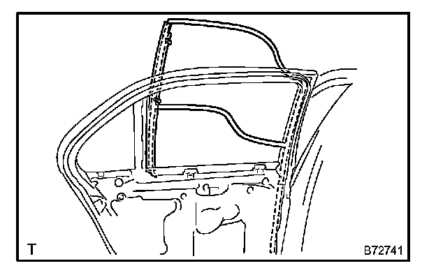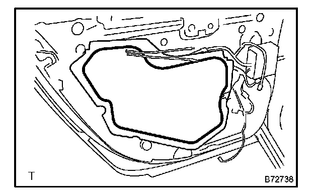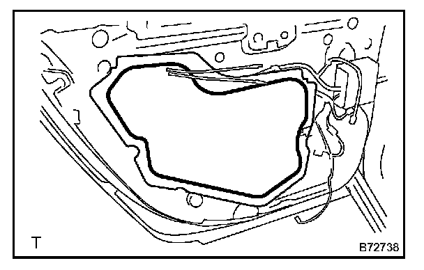 a. Apply butyl tape to the door as shown in the illustration.