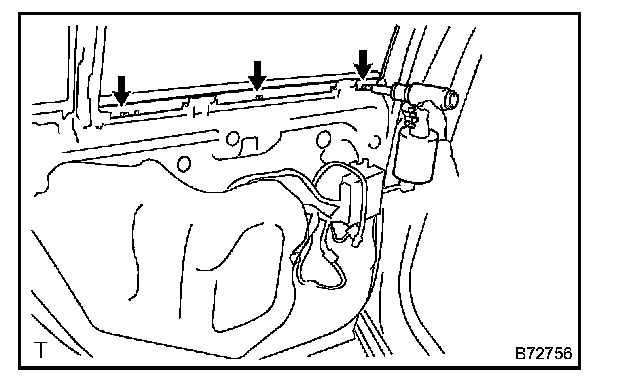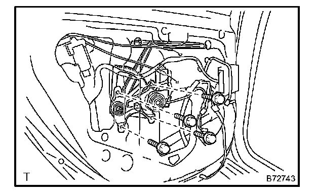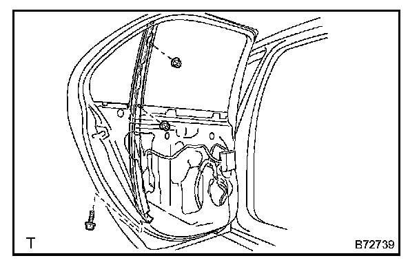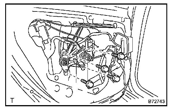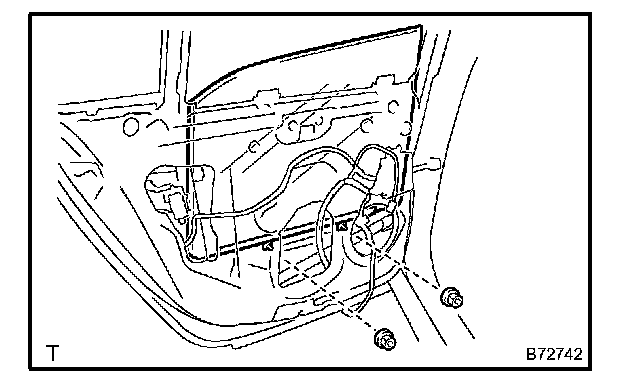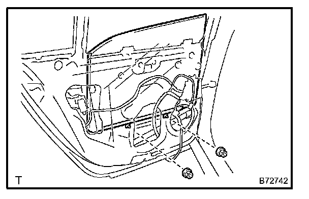 NOTE: Be careful when removing the bolts as the window regulator may fall and become damaged.
