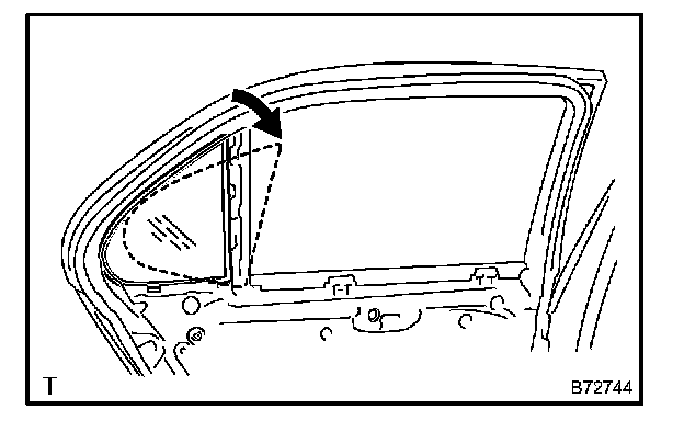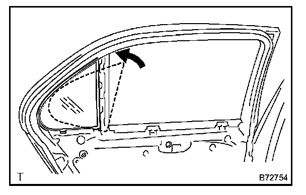 b. Install the quarter window glass in the direction indicated by the arrow mark in the illustration.