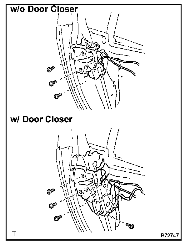 NOTE: Be careful when removing the bolts as the door lock may fall and become damaged.
