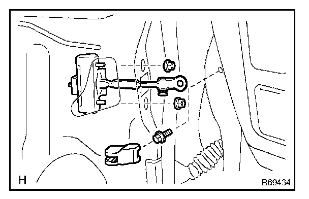 b. Remove the bolt, 2 nuts and door check.