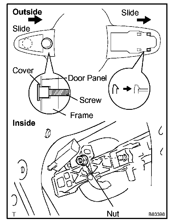 NOTE: A cover should be inserted between the nut and the door panel.