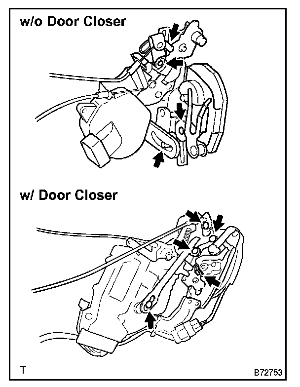 a. Apply MP grease to the sliding and rotating areas of the door lock.