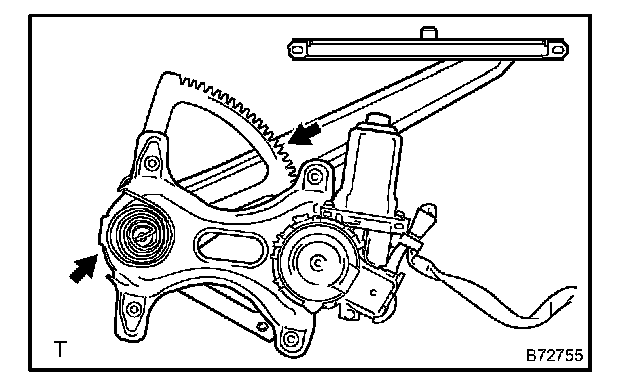 NOTE: Do not apply grease to the spring of the window regulator.