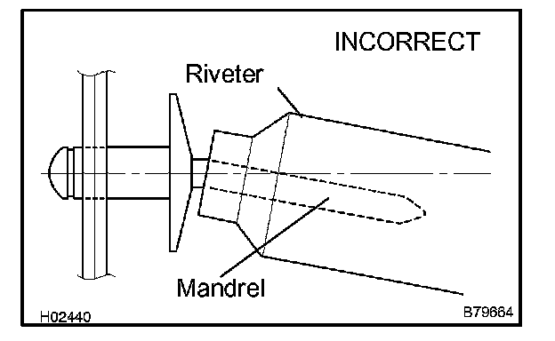 - Do not prize the riveter. The riveter will be damaged and the mandrel will bend.