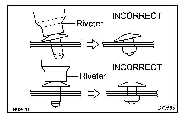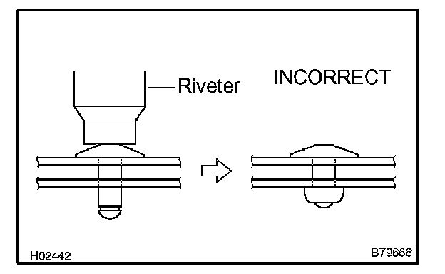 - Do not tilt the riveter when fastening the rivet to the glass run as this will cause the rivet to be loose.