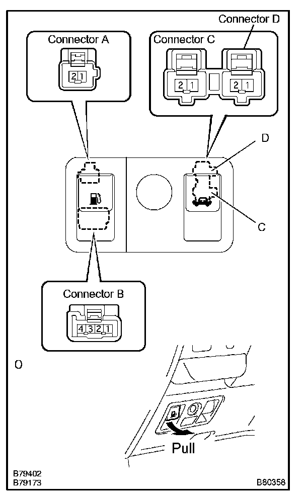 INSPECT LUGGAGE DOOR OPENING SWITCH ASSEMBLY (FUEL LID OPENER SWITCH)