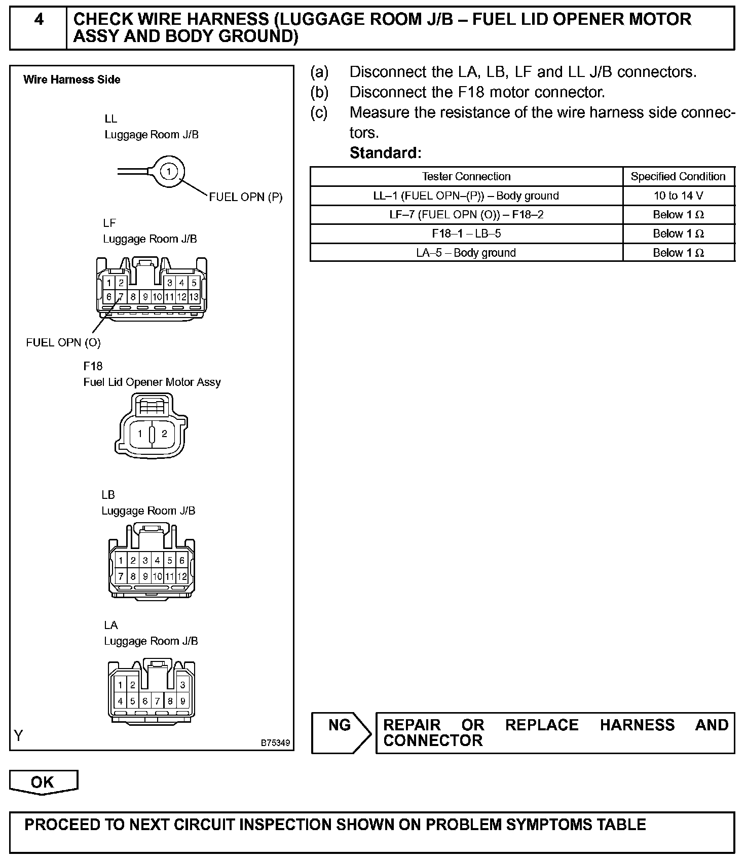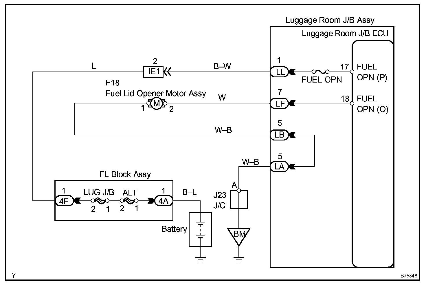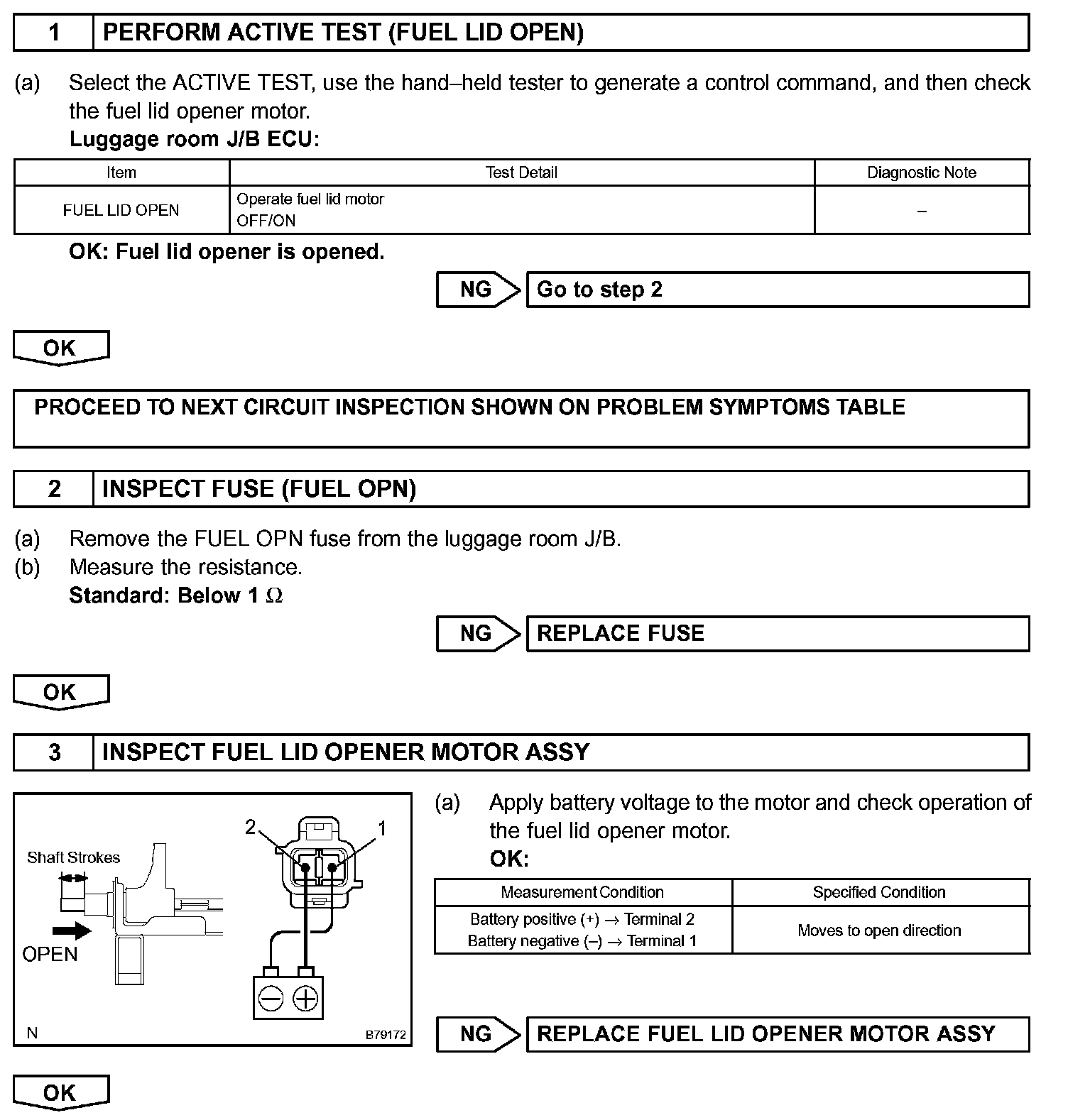 The circuit opens the fuel lid when the ECU sends signals to the fuel lid opener switch.
