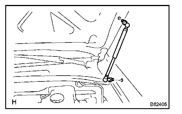 a. Install the hood support with the 2 bolts.