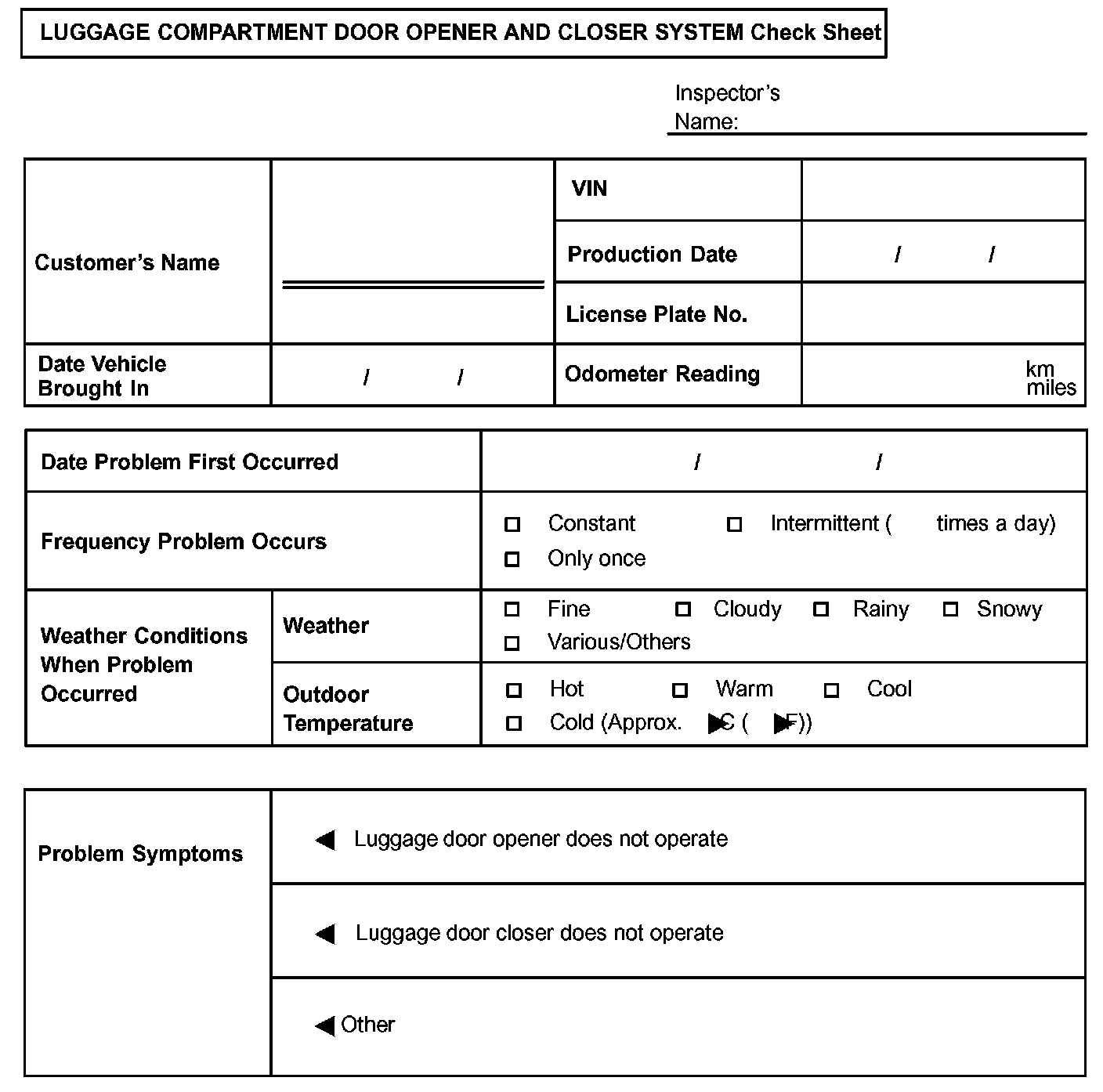 Luggage Compartment Door Opener And Closer System Check Sheet: