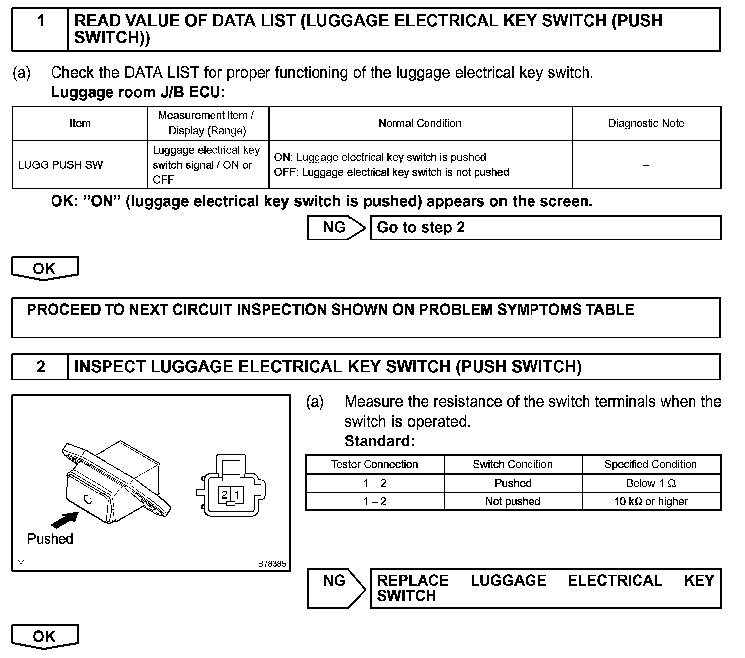 LUGGAGE ELECTRICAL KEY SWITCH CIRCUIT