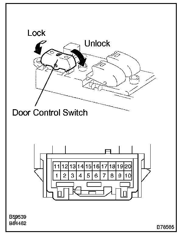 2. INSPECT DOOR CONTROL SWITCH ASSY