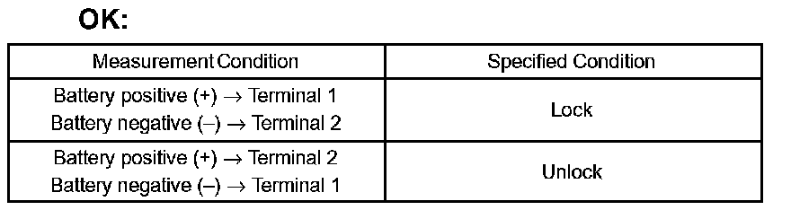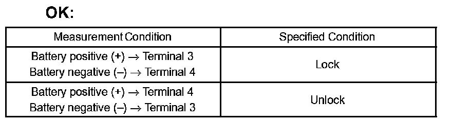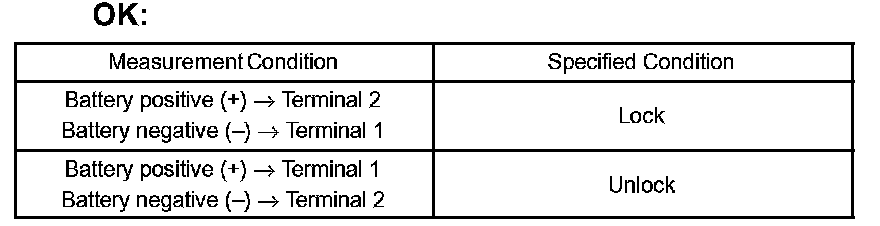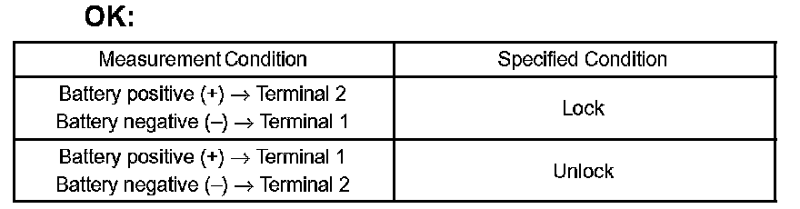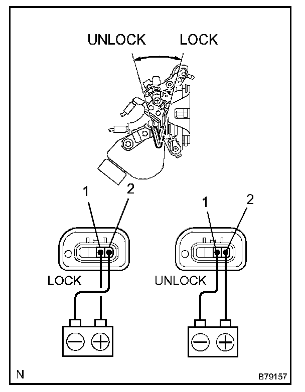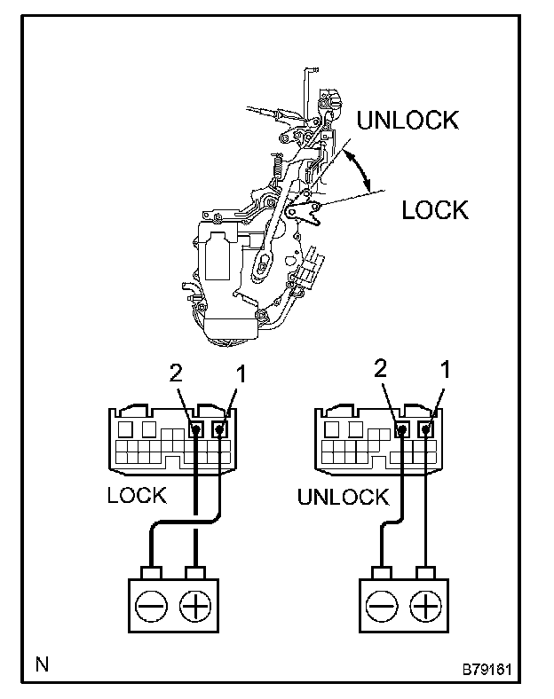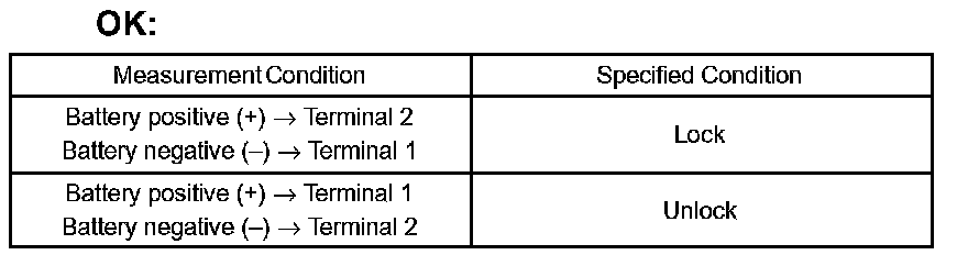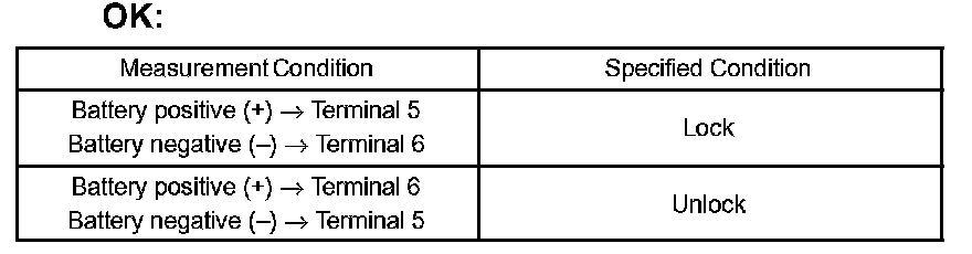 a. Apply battery voltage to the door lock and check operation of the door lock motor.