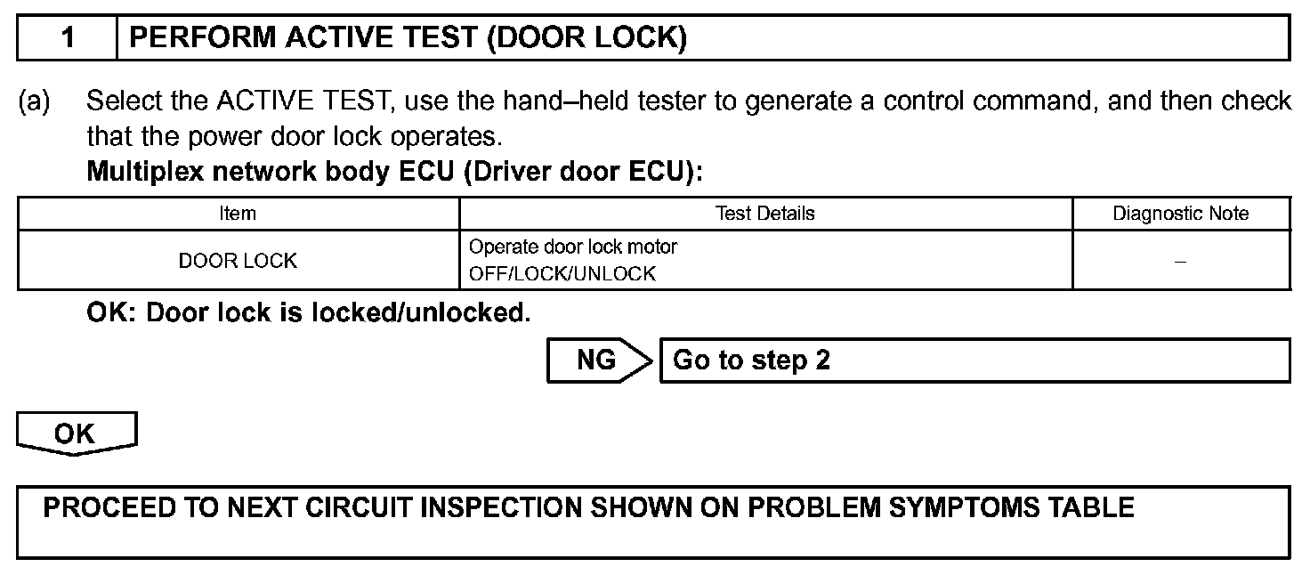 The driver door ECU receives the driver door lock switch signal from the master switch and operates the door lock motor.
