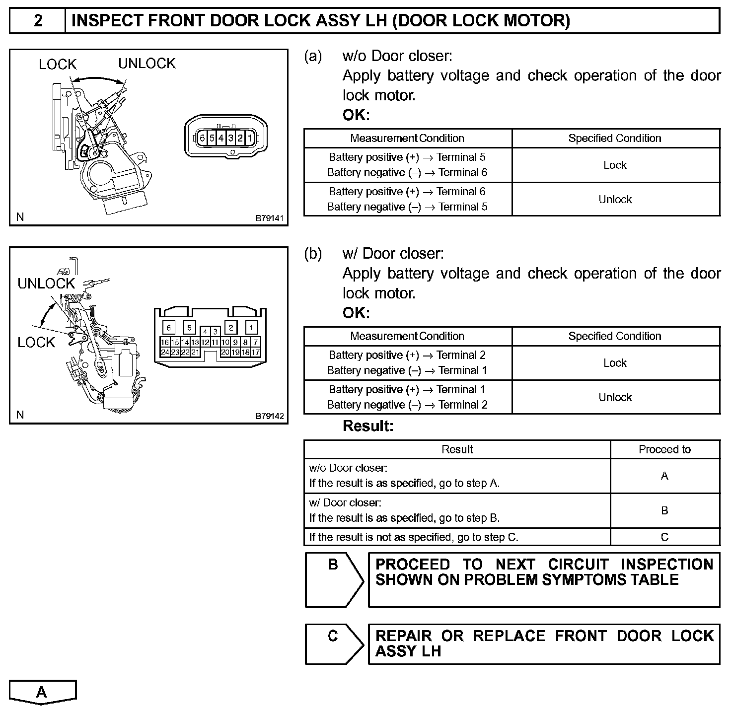 When the battery voltage is supplied to the terminal as follows, the door lock functions accordingly.