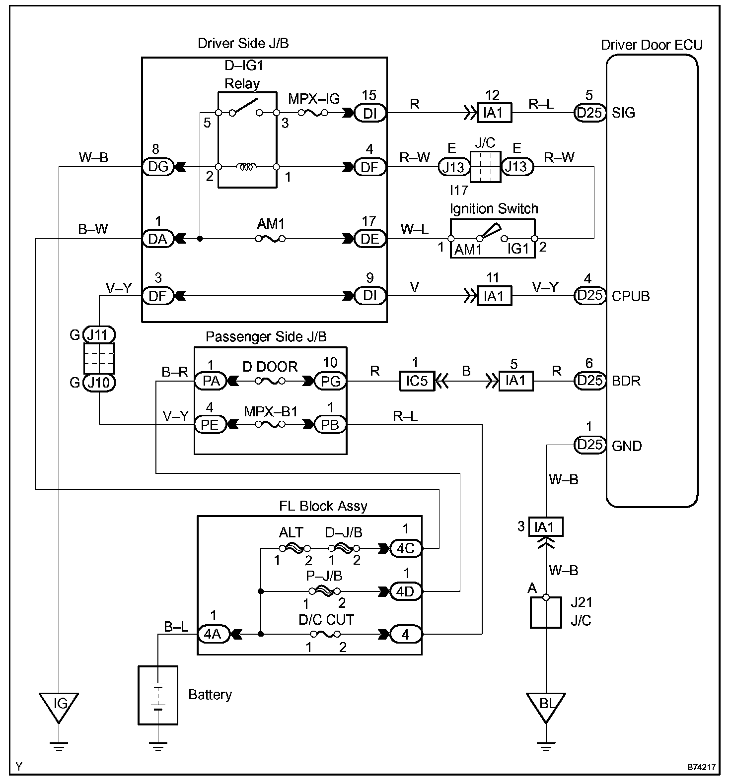 Driver Door ECU Power Source Circuit
