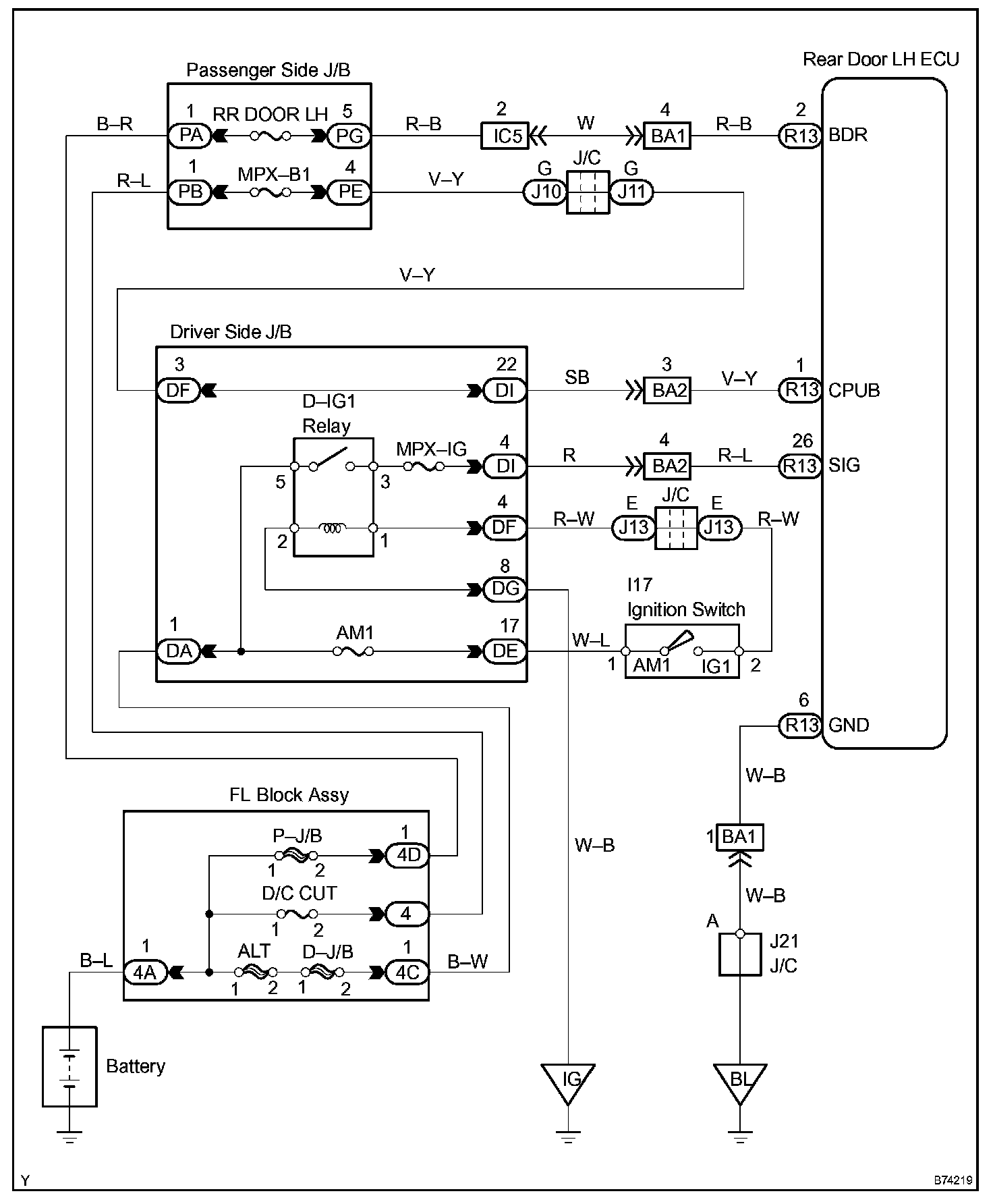 REAR DOOR LH ECU POWER SOURCE CIRCUIT