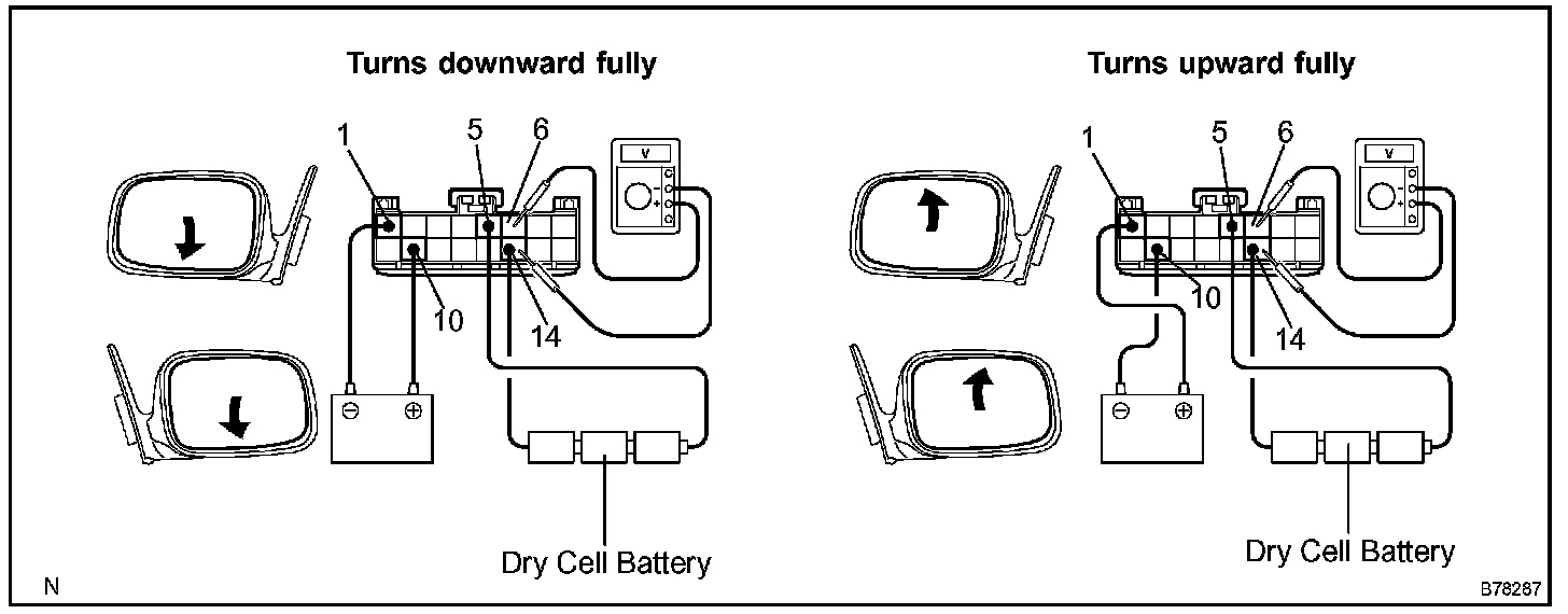 b. Measure the voltage while the mirror moves between the fully turned downward position and fully turned upward positions.