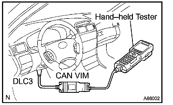 - Connect the cable of the hand-held tester (with CAN VIM) to the DLC3, turn the ignition switch ON and attempt to use the hand-held tester. If the screen displays UNABLE TO CONNECT TO VEHICLE, a problem exists in the vehicle side or the tester side.