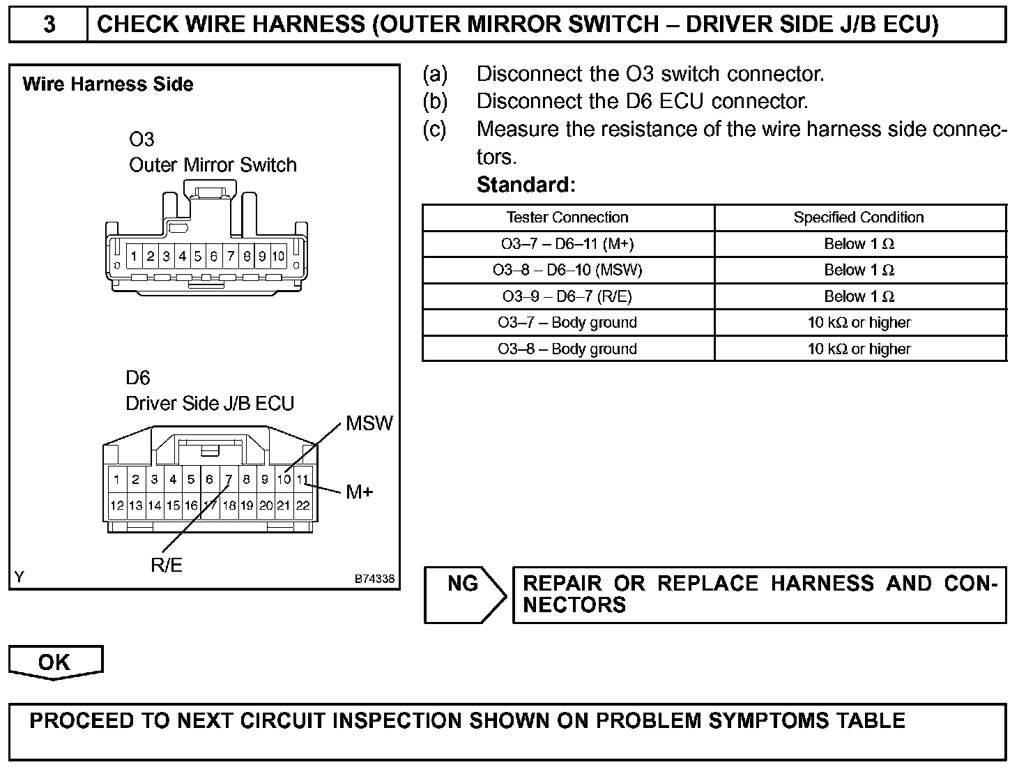 This circuit detects the conditions of the mirror master switch and the mirror control switch.