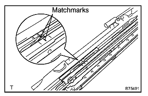 a. Using a screwdriver, slide the sliding roof drive cable to align the matchmarks.