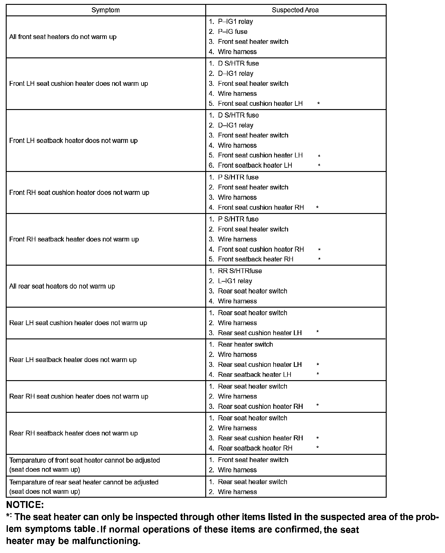 Problem Symptoms Table - Seat Heater System: