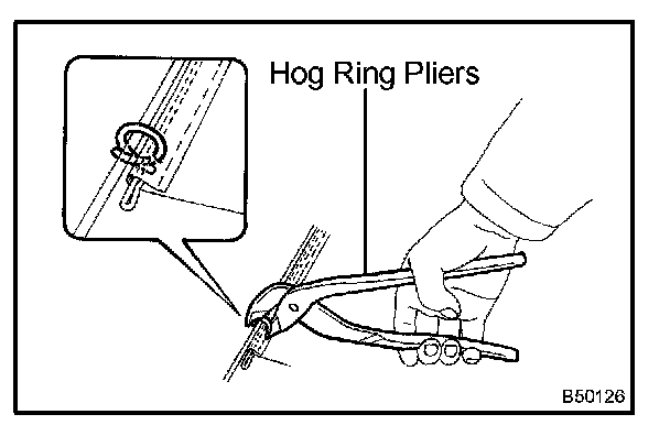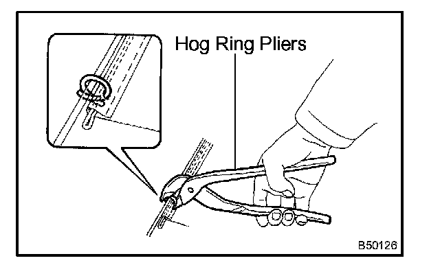 b. Using hog ring pliers, install the cushion cover to the cushion pad with new hog rings.