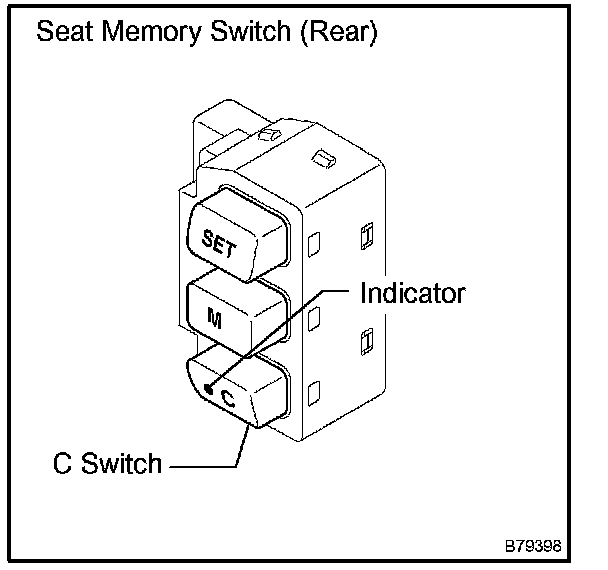 1. Press the M switch. While the seat is moving, press the C switch. Check that the seat stops immediately.