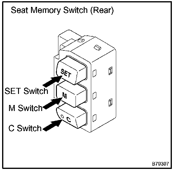 3. Change the position of the seat and then press the M switch. Check that the buzzer sounds for 0.1 seconds and the seat automatically moves to the position in step (b)-(1).