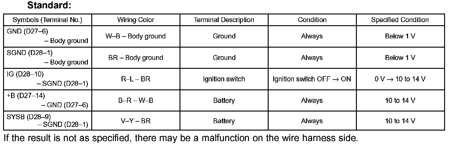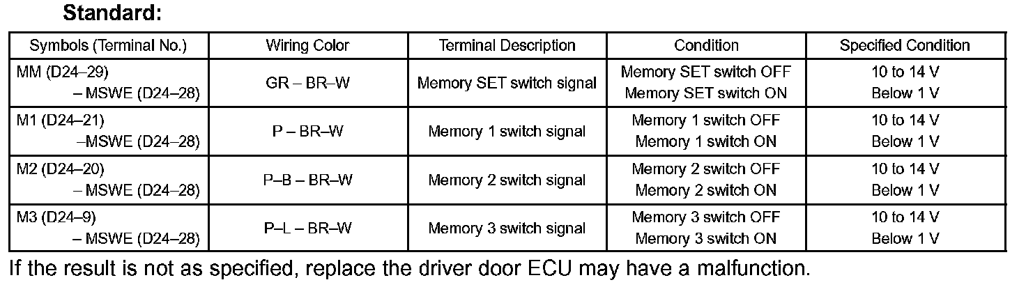 Terminals Of ECU / Pinouts - Check Driver Door ECU:
