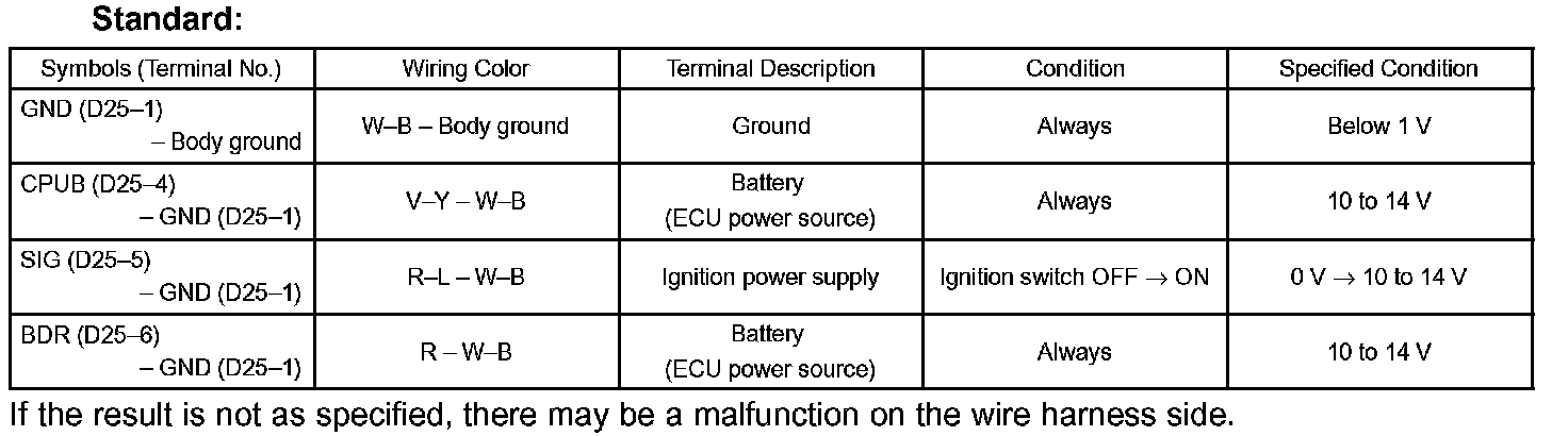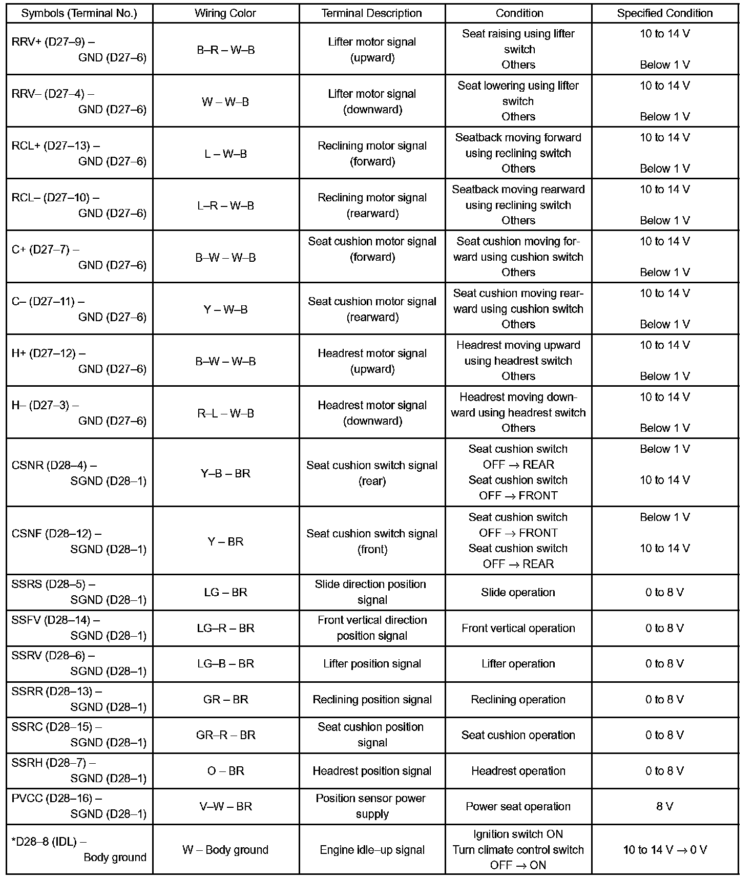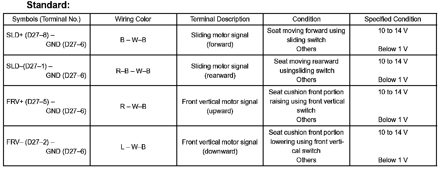 If the result is not as specified, replace the power seat or the ECU may have a malfunction.