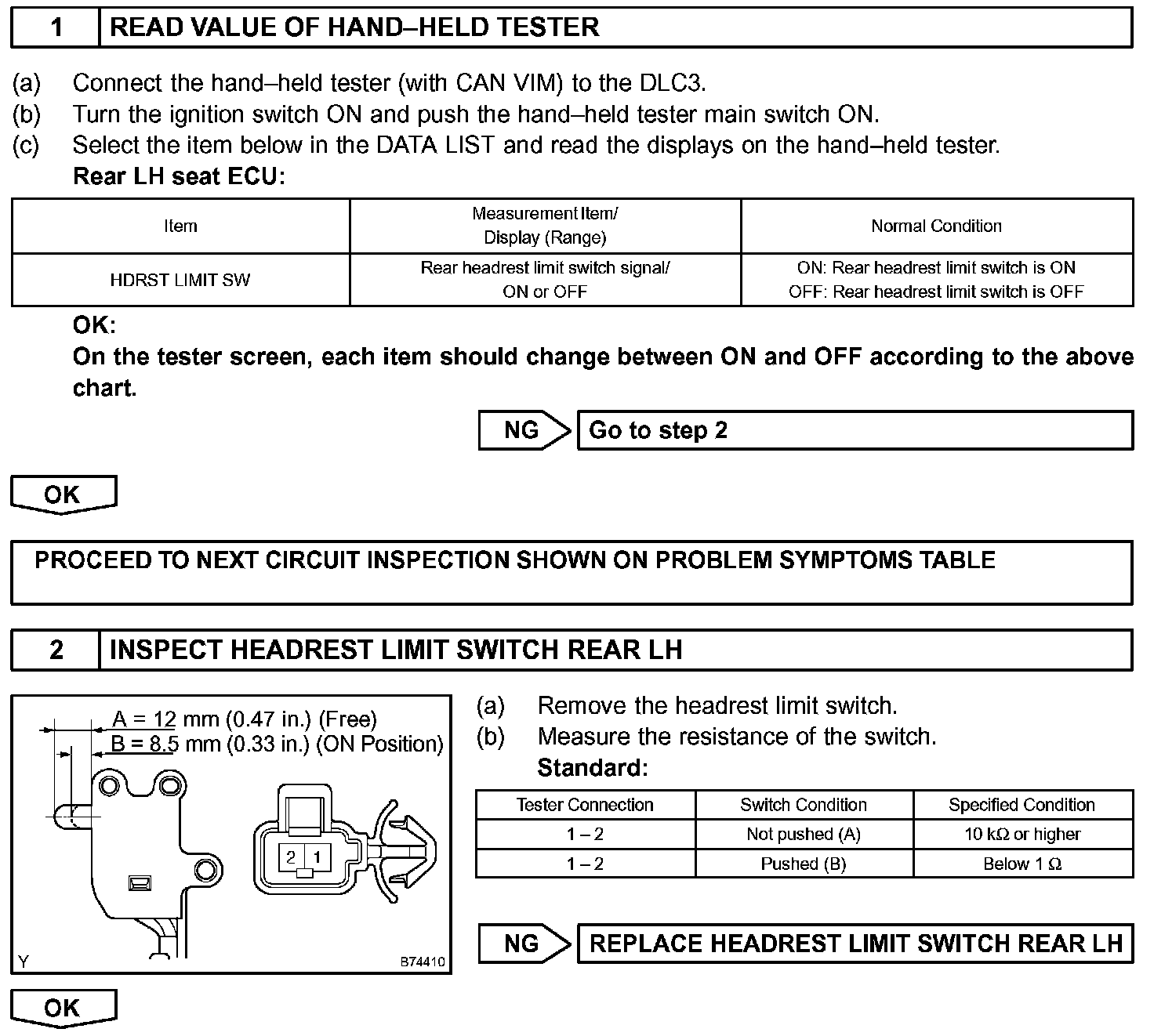 The rear LH seat ECU detects the state of the headrest limit switch.