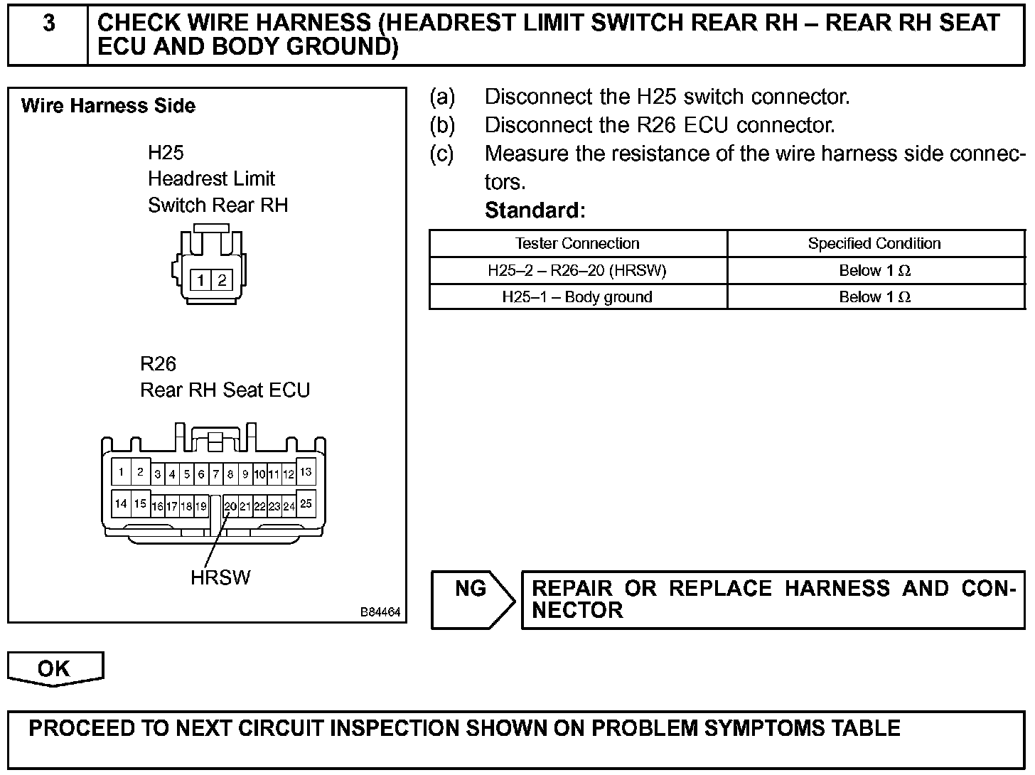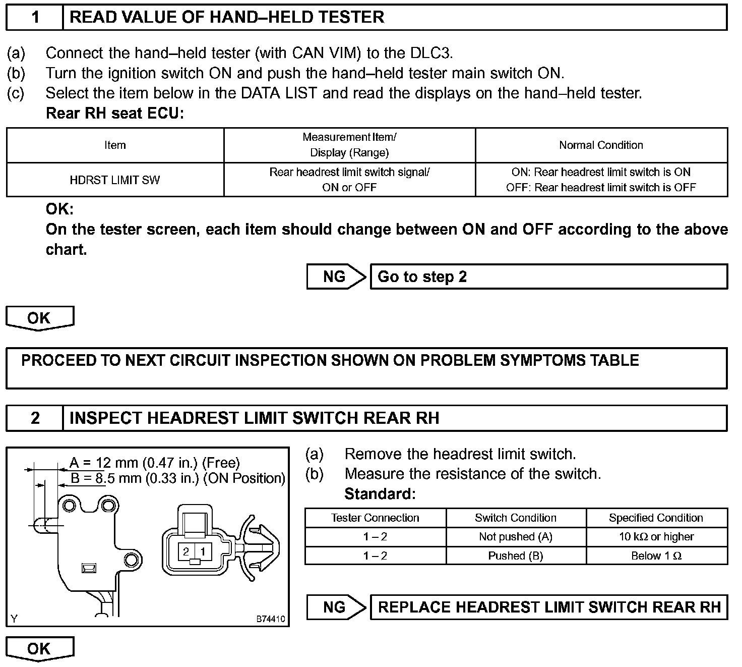 The rear RH seat ECU detects the state of the headrest limit switch.