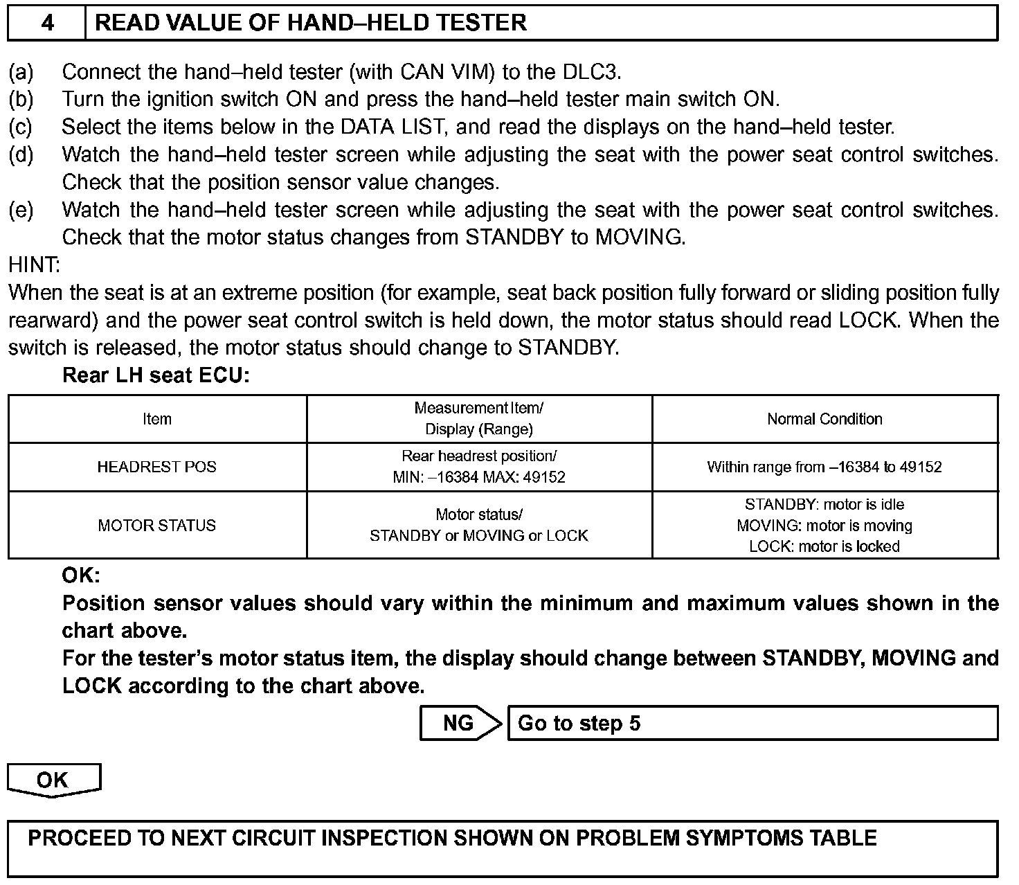 HEADREST MOTOR AND POSITION SENSOR CIRCUIT (LH)CIRCUIT DESCRIPTION