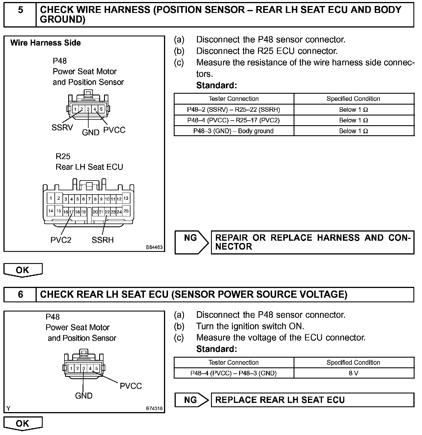 The position sensor sends pulses to the ECU in proportion to the amount of seat movement. The ECU re cords the number of pulses relative to a previously recorded seat position and uses this data to return the seat to that position.