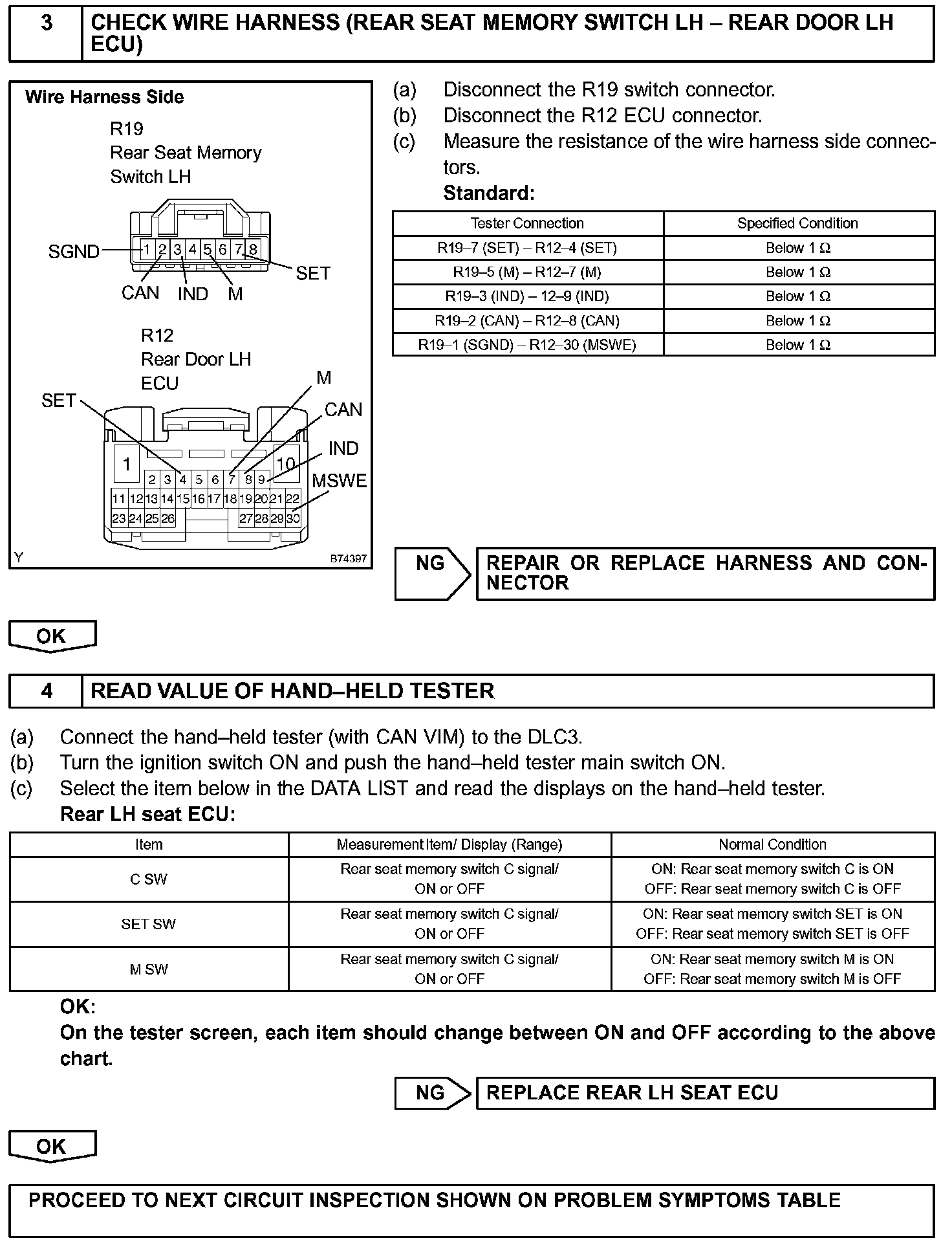 REAR SEAT MEMORY SWITCH (LH) (W/ MEMORY)CIRCUIT DESCRIPTION